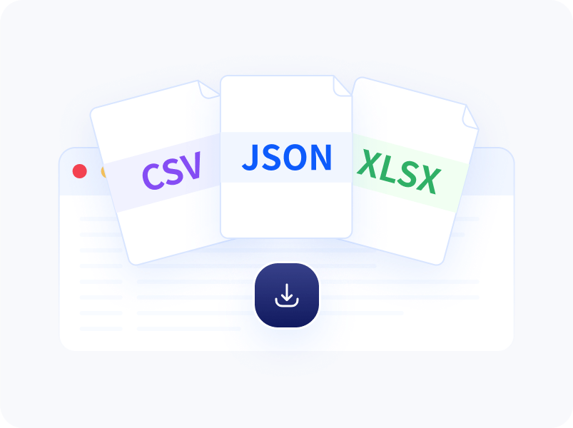 支持 JSON / CSV / XLSX 等多种主流格式,覆盖多主流平台,一键导出,快速集成至数据库、BI工具或业务系统。