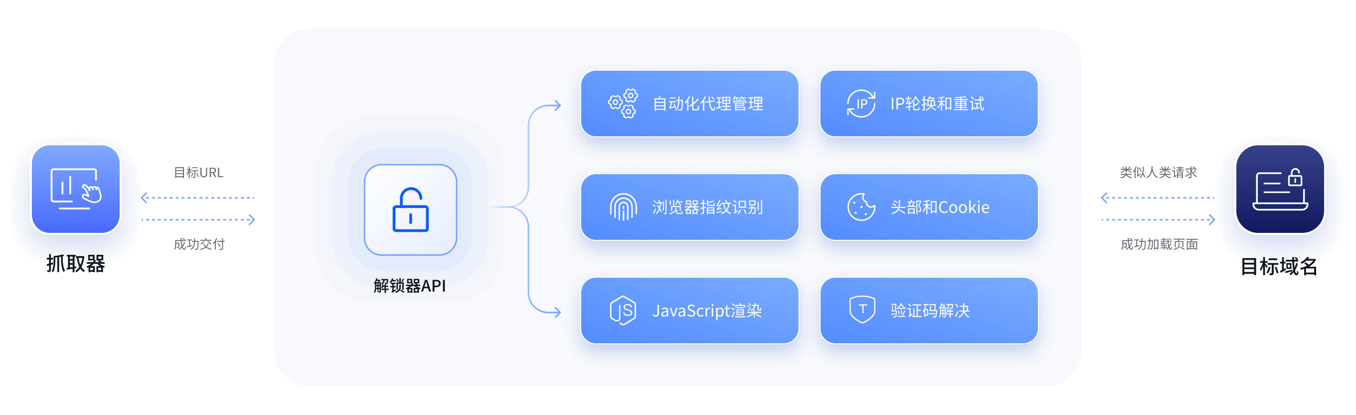 只需几行代码,轻松将网页解锁API 无缝集成到您的业务系统。让您在几分钟内即可开始网页抓取,实现数据抓取全链路的无缝协作,无需开发和维护基础设施,保障数据获取过程的顺畅与稳定。